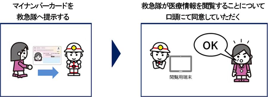 - 救急活動時にマイナンバーの提示及び医療状況の閲覧を同意していただくこと(口頭)